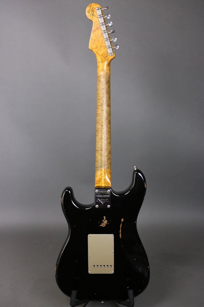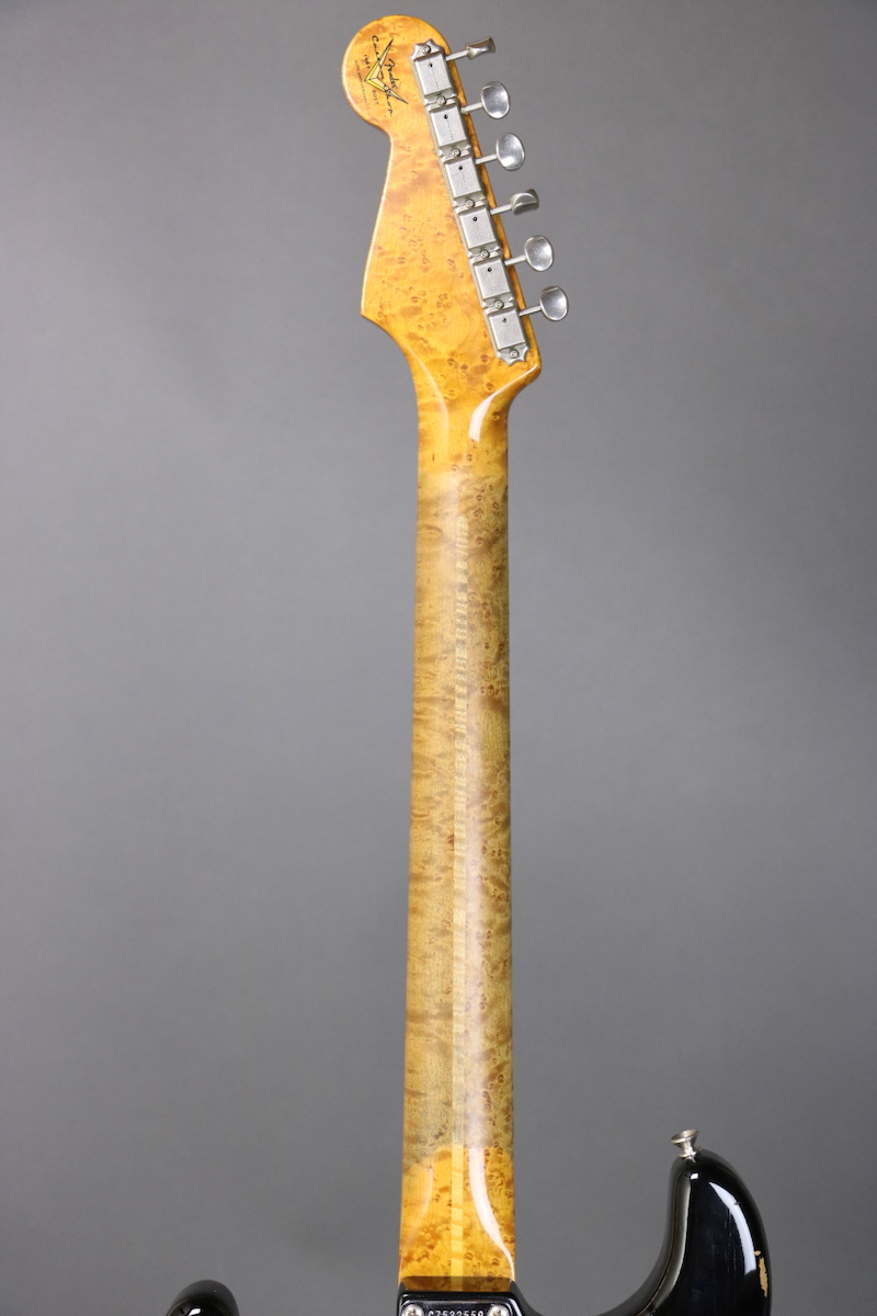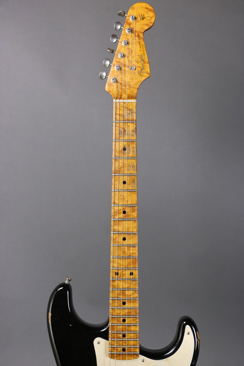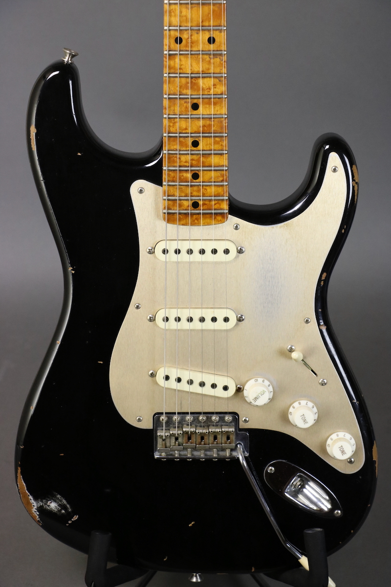 New price! This “Roasted Relic” ’56 Stratocaster was part of a Limited Run built for the NAMM show and features a roasted Alder body, medium roasted 3A birdseye maple neck with “10/56 V” profile (.880” 1st, .980” 12th), 9.5” fingerboard radius with 6105 fret wire, hand-wound Fat 60’s pickups with 5-way selector switch, and a black relic finish. 7.55 lb. Comes in a G&G hardshell case with Fender Custom Shop COA and floor traveler.