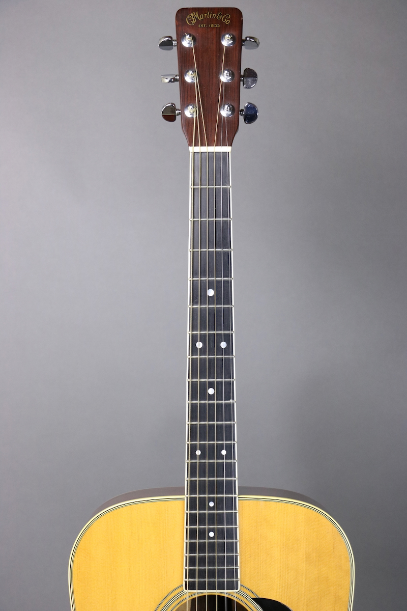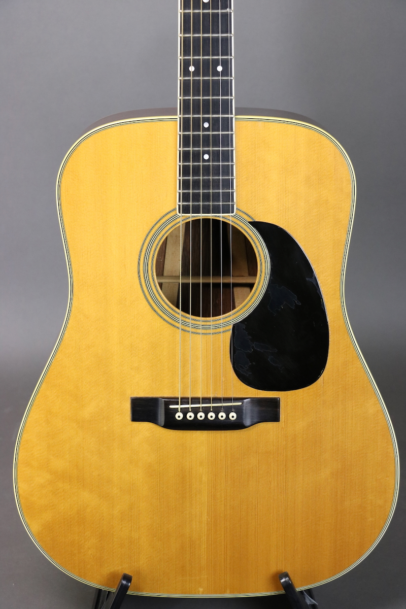 This 1968 D-35 is an exceptionally nice example featuring a Sitka spruce top with a small rosewood bridge plate, Brazilian rosewood back & sides (3-piece back), mahogany neck with ebony fingerboard, ebony bridge with drop-in saddle, and Grover tuners. There is a wear spot on the back of the neck around the 9th fret that was touched up, and a small crack on the outer edge of the pickguard that was glued. Aside from those two minor points, the guitar is untouched. The original frets show some wear under the unwound strings through the first three or four frets, but clearly the guitar was only brought out occasionally. Comes in the original hardshell case.
