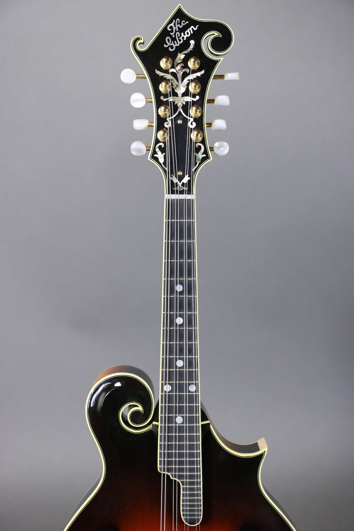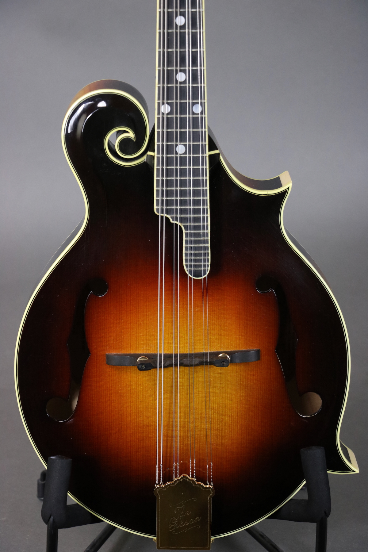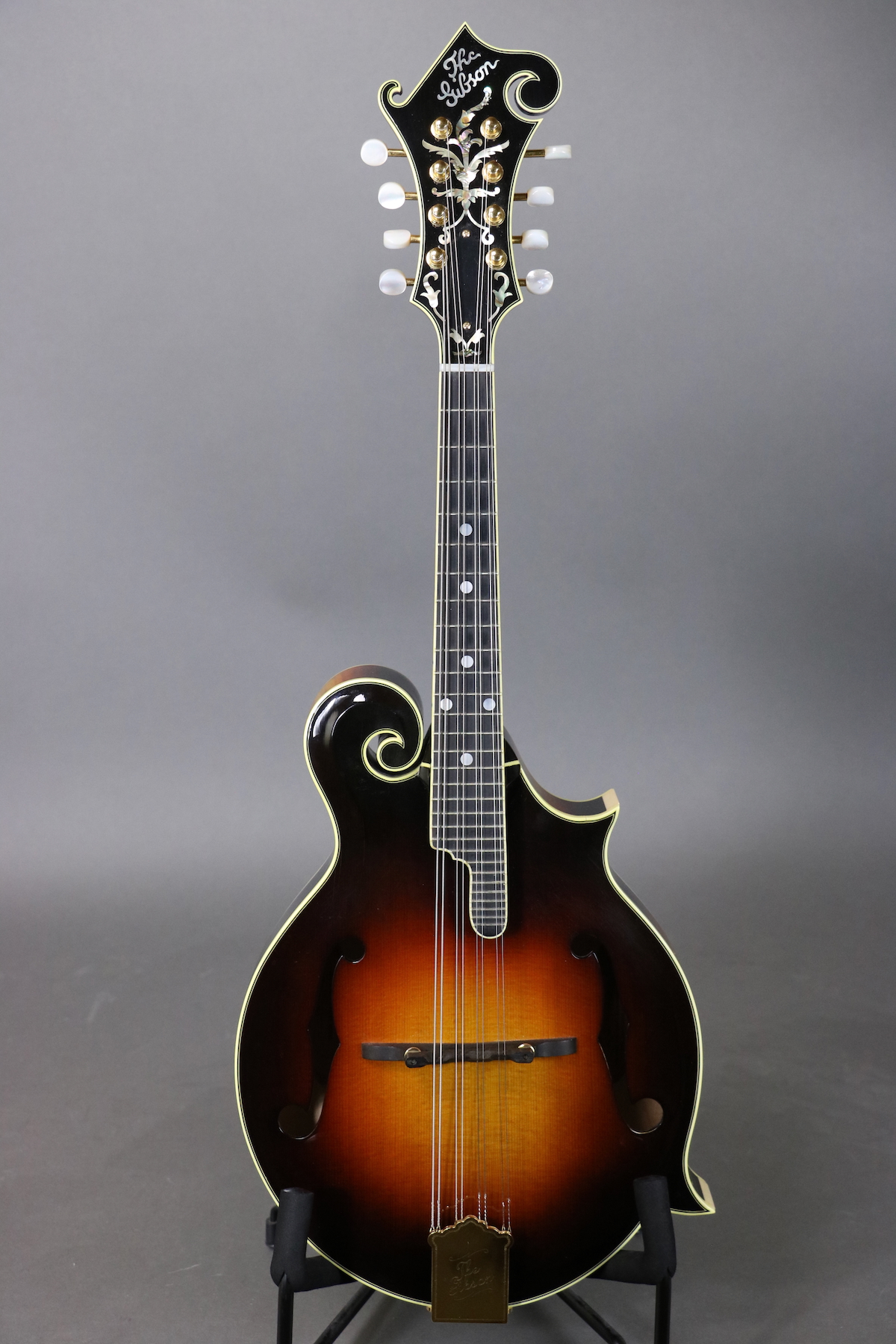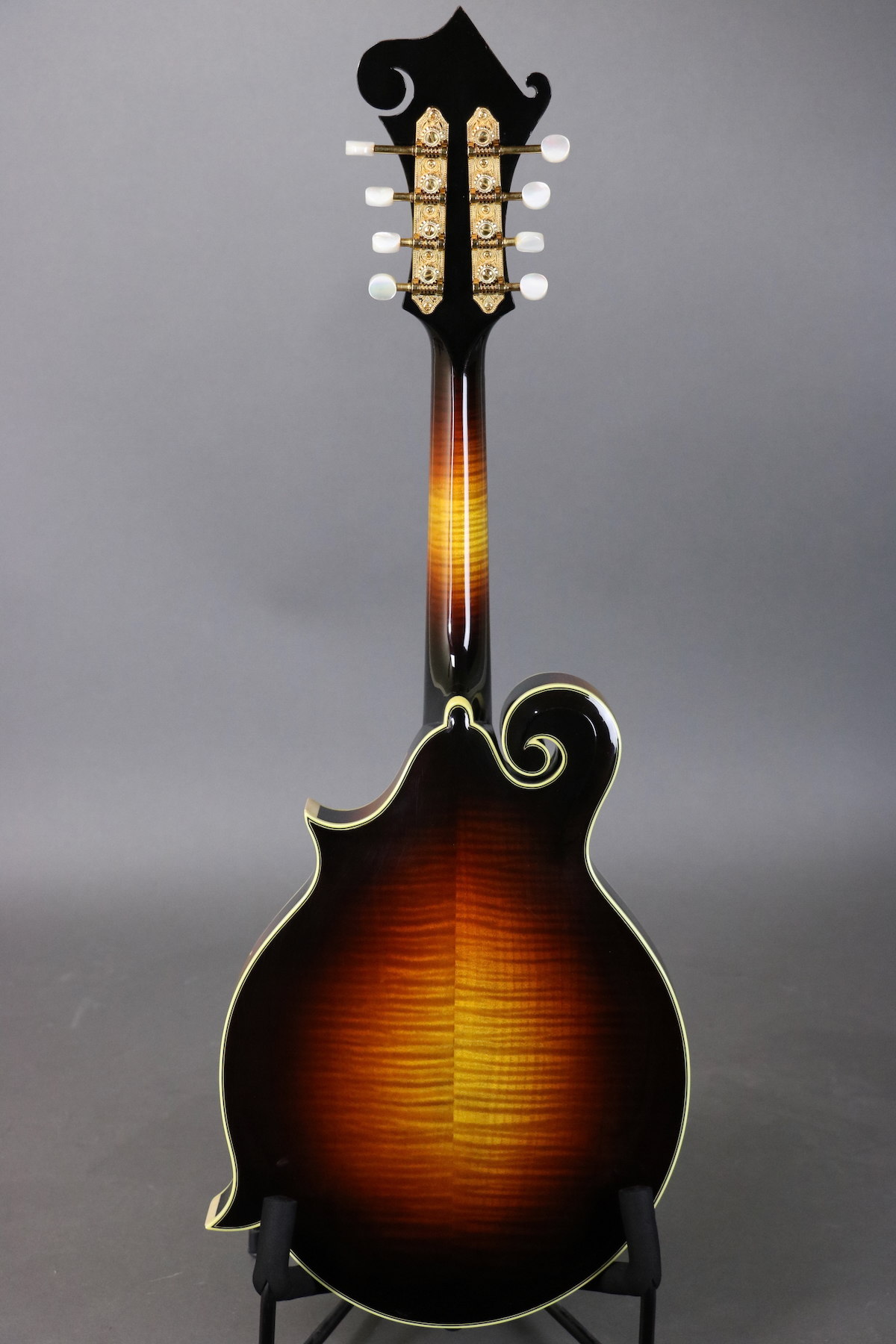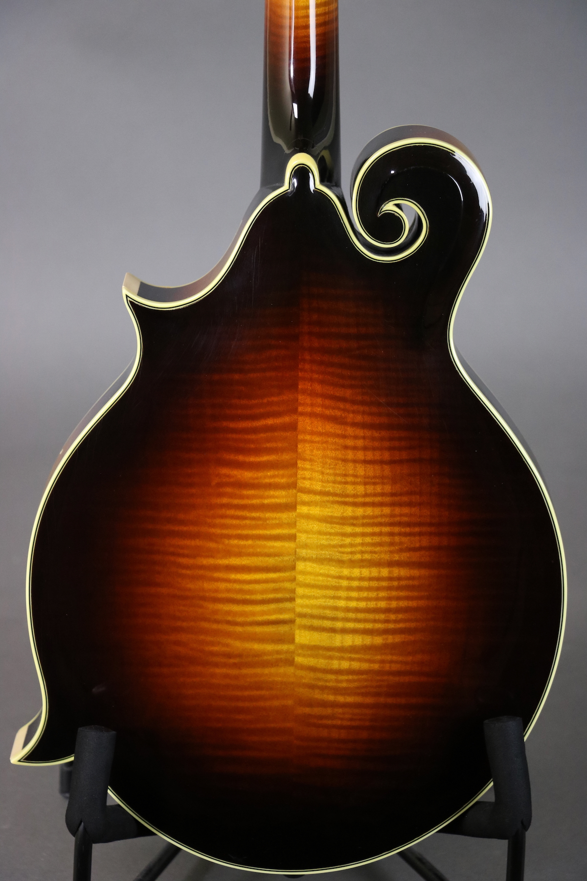 This F-5L was signed by Bruce Weber on September 5, 1994 and features a carved spruce top with parallel tone bar bracing, figured maple back & sides, figured maple neck with “rounded V” neck profile, adjustable ebony bridge, “Fern” headstock inlay, Cremona style lacquer finish, and gold-plated tuners. There are holes for a pickguard, but it either was never installed or was removed. Cosmetically the mandolin is in great shape with just some light finish checking and shirt button marks on the back. There is some fret wear under the unwound strings frets 1-5, but mandolin plays very well with no issues. Comes in the original hardshell case.